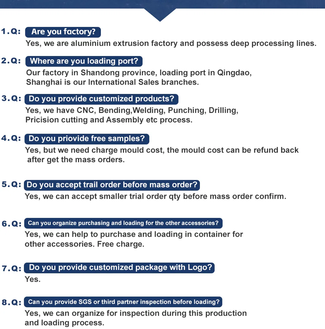 2. Alloy Temper: 6063-T6; 5083-H112; 6061-T6/T651; 6082-T6/T651; 6351-T6; 7075-T6.