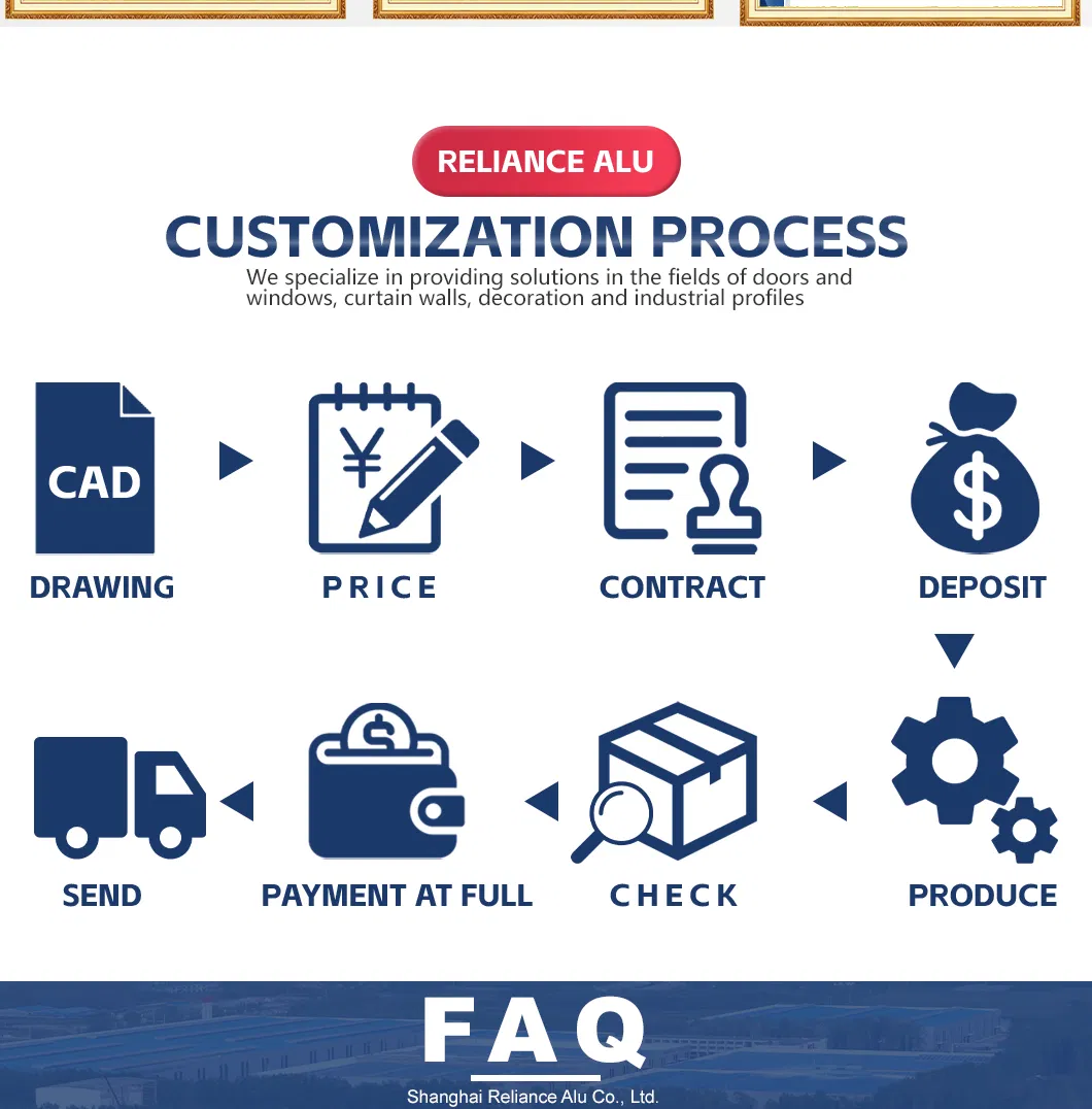 | SURFACE | Mill finish, Anodized (Clear/Matt), Polished, Brushed, PVDF Coating, 3D Wood Grain, Powder Coating | |||||||
