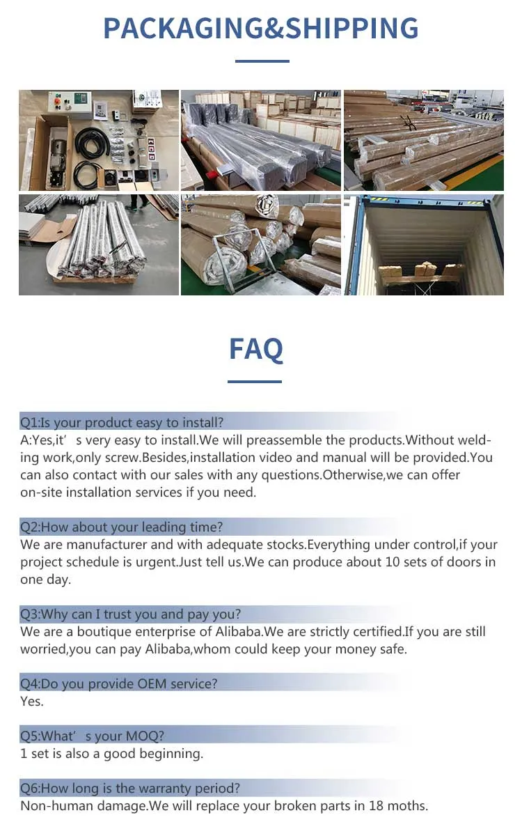 Sectional door has a beautiful appearance, high strength, low noise and insulation properties, making it widely used in areas with high cleanliness requirements, such as factories, medicine, food, electronics, printing, supermarkets, etc.