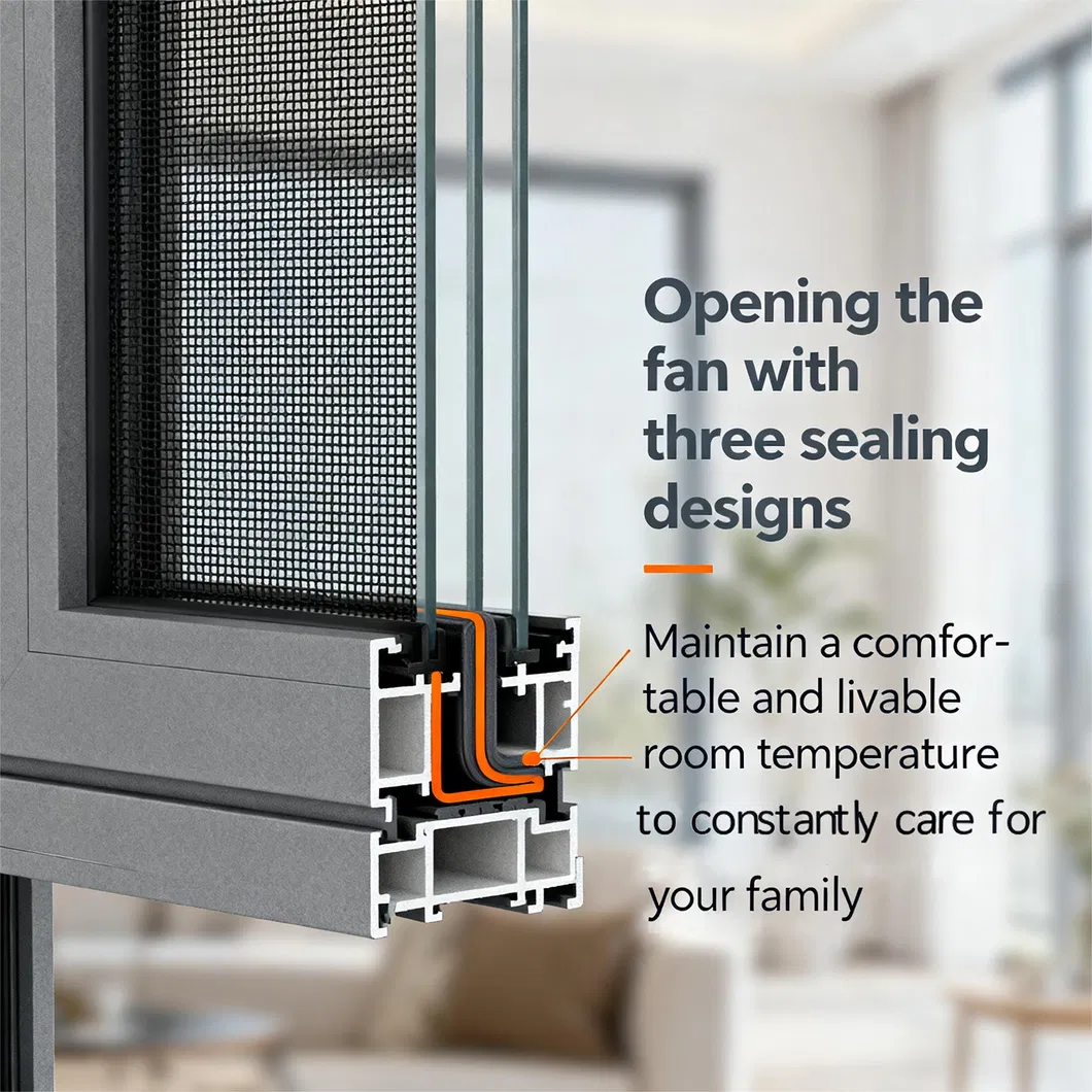 This aluminum door and window is made of 6063-T5 aviation-grade aluminum alloy with automotive-grade tempered glass, featuring high strength and impact resistance. The surface is treated with electrostatic powder coating for weather resistance, corrosion protection, and no easy fading or deformation. The multi-cavity structure ensures excellent sound and heat insulation performance. Combined with a multi-point locking system, it upgrades anti-theft capabilities.