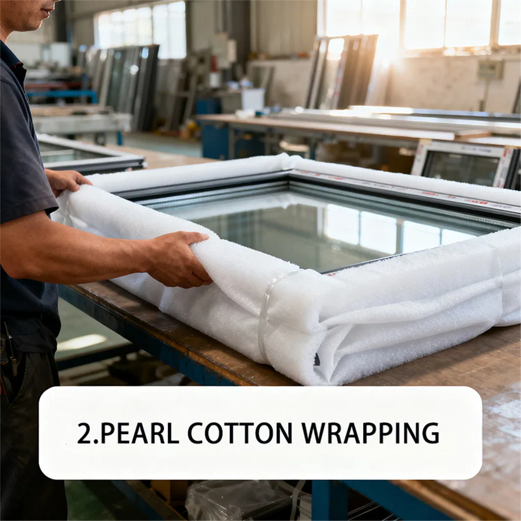 We adopt layered protective packaging: protective films for profiles, thickened corner protectors, and waterproof bags. Glass is individually wrapped with pearl cotton and embedded in wooden frames. Finished products are packed into standard wooden cases with moisture-proof signs.